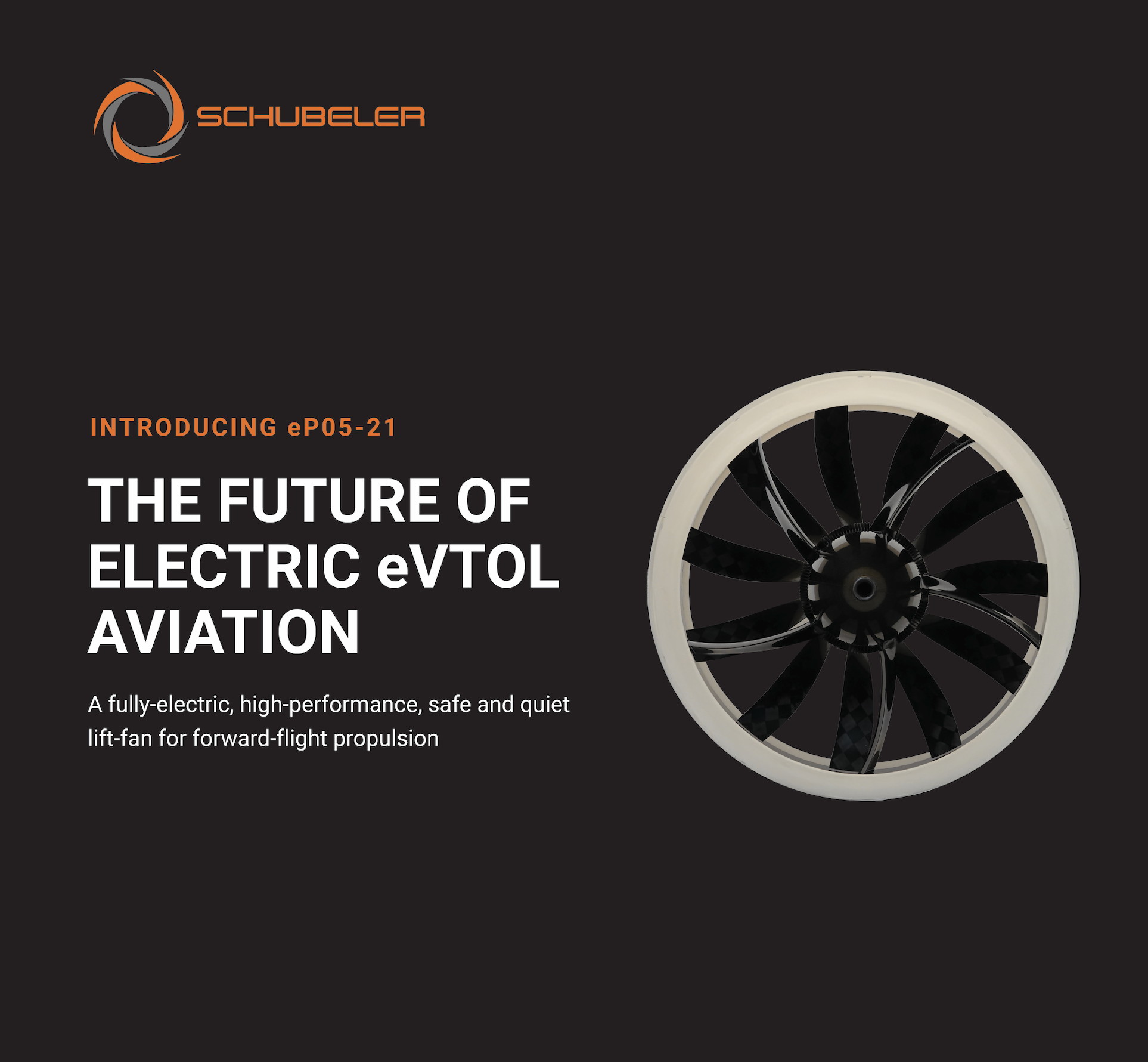 舒贝勒(Schubeler) eP05-21 专为先进空中交通(AAM)应用而设计。直径为524mm,直流功率输入为21 kW,静态推力为680N,飞行速度范围为0-45 m/s,低于60V架构,已准备好集成到eVTOL项目中。